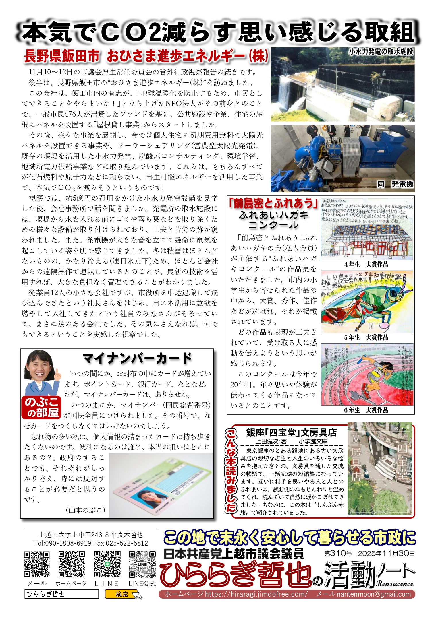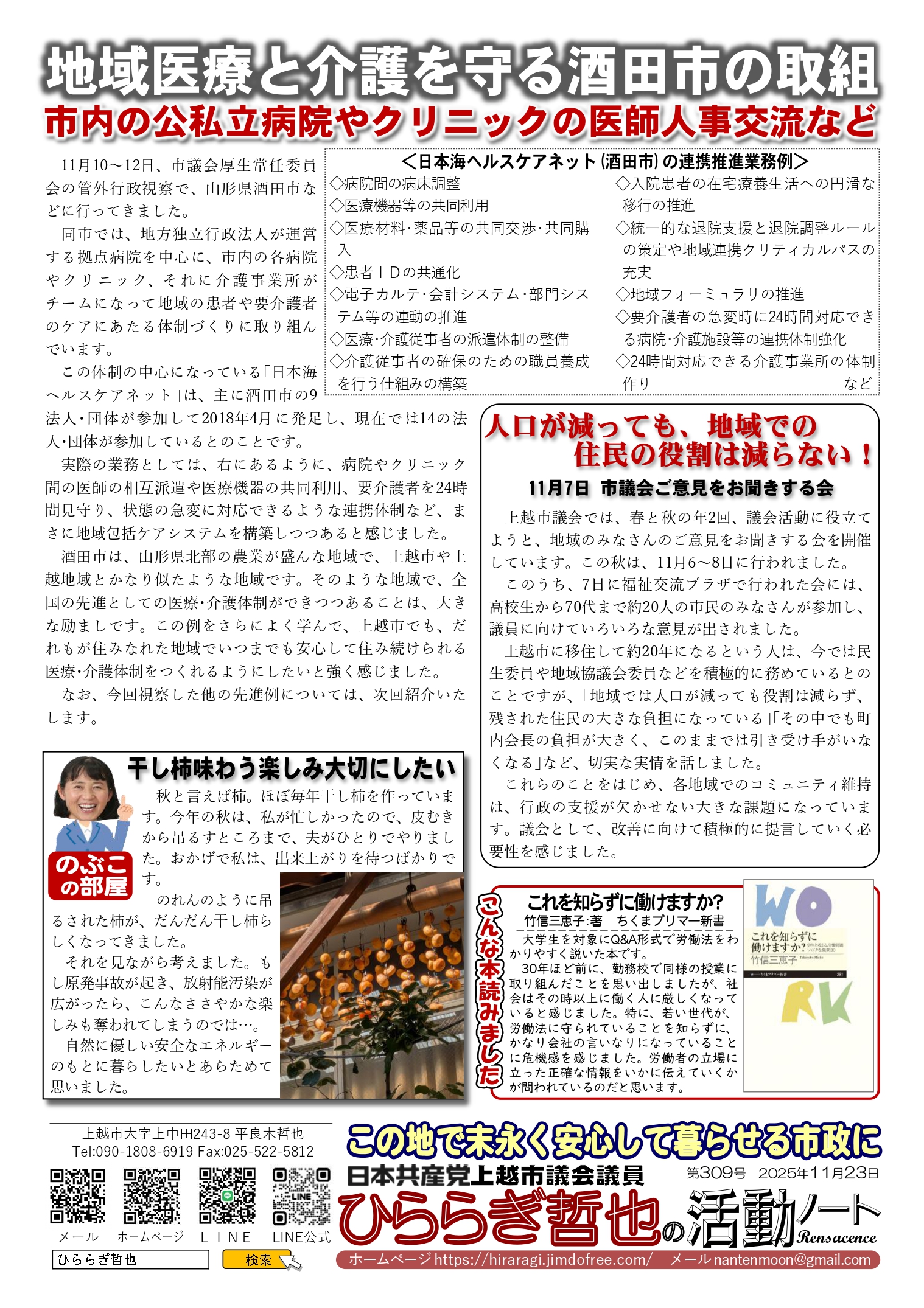 上越市 ひららぎ哲也の活動ノート・後援会ニュース(毎週発行)