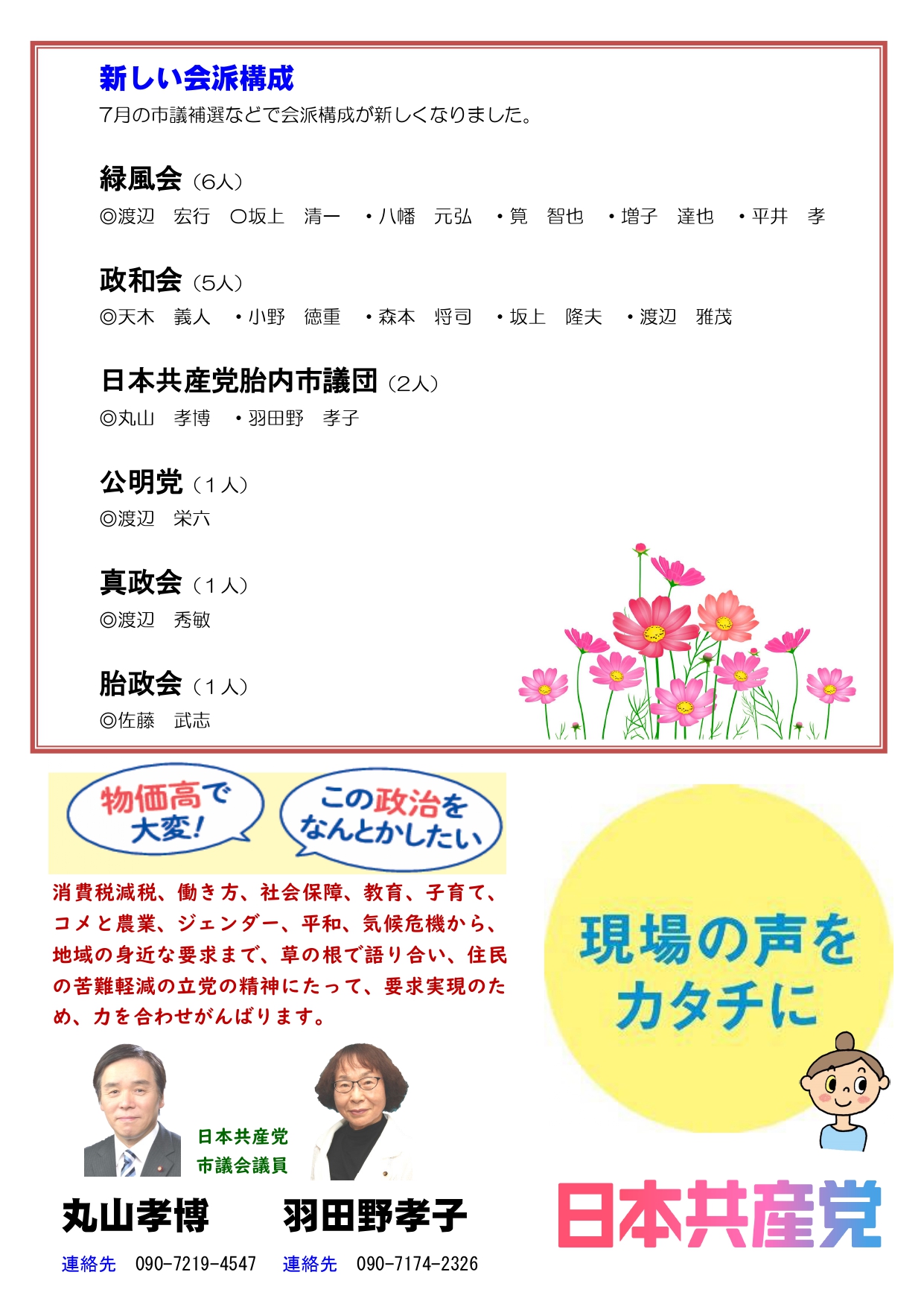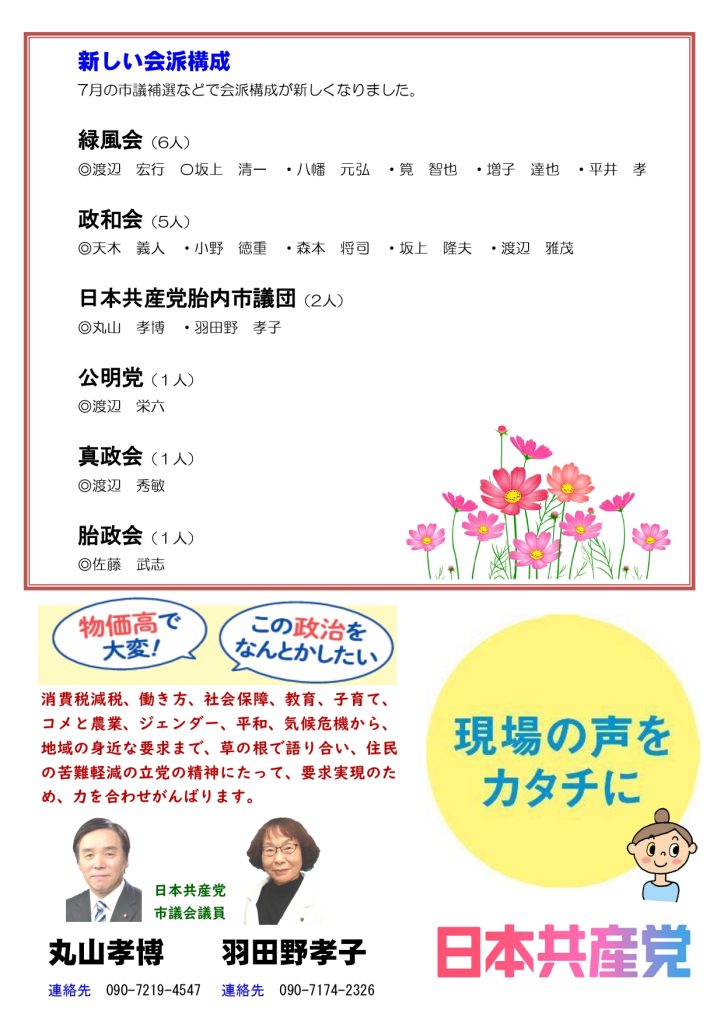 日本共産党胎内市議団ニュース 2024年8月4日 2面