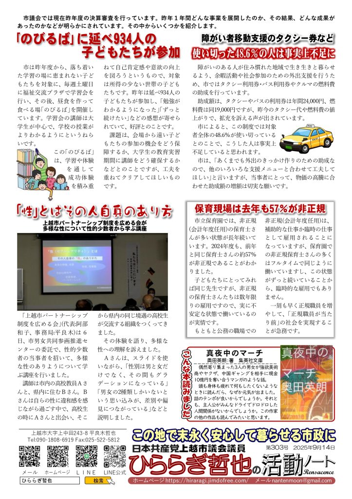 ひららぎ哲也上越市議会議員の活動報告です。