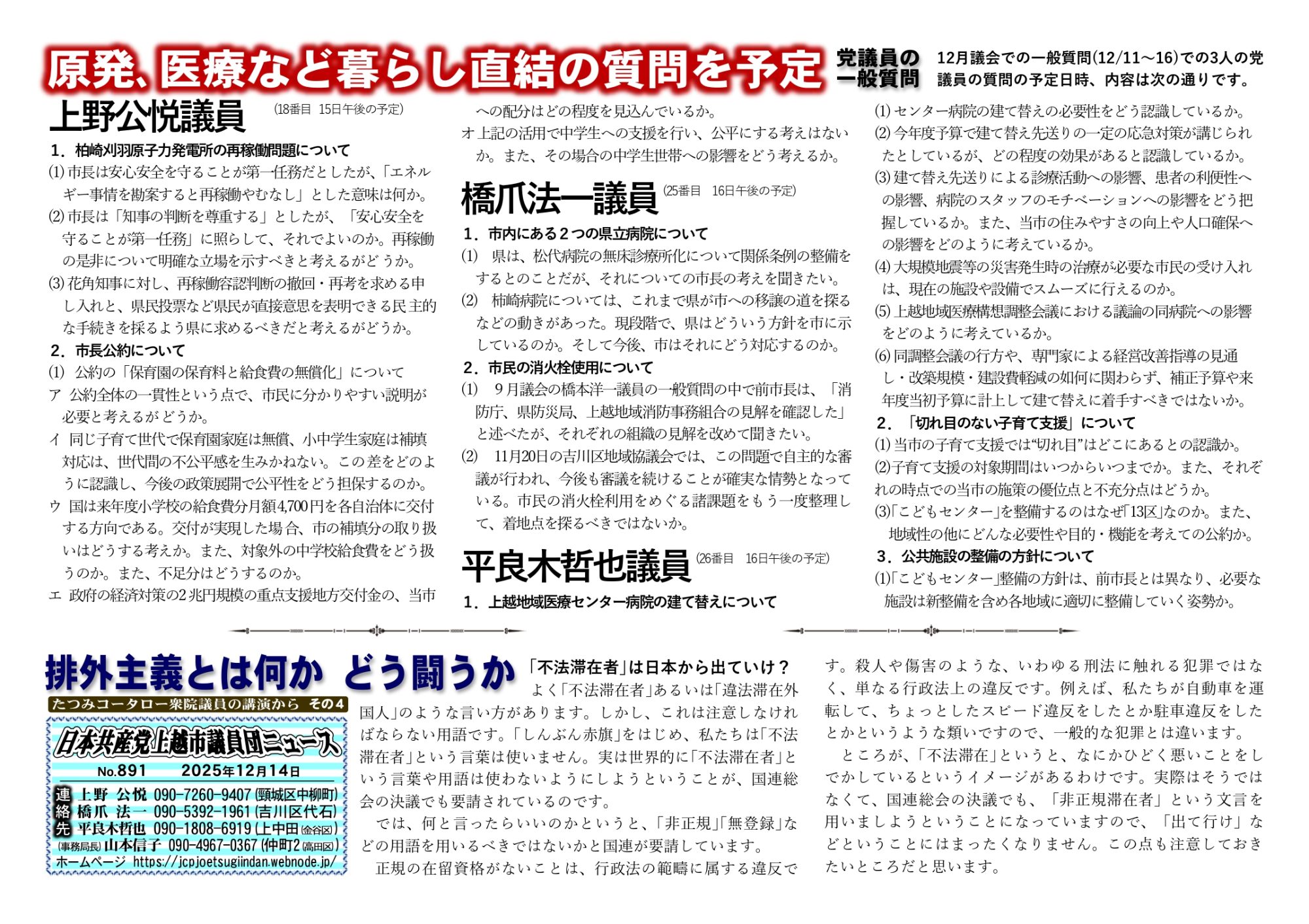 上越市議団ニュース(毎週発行)