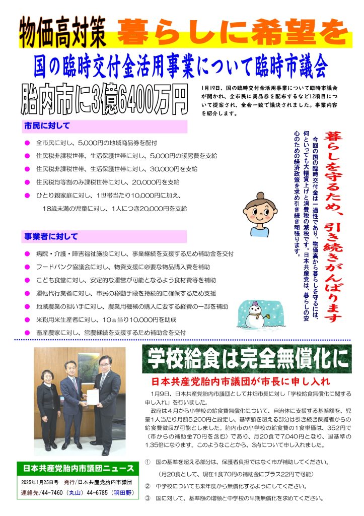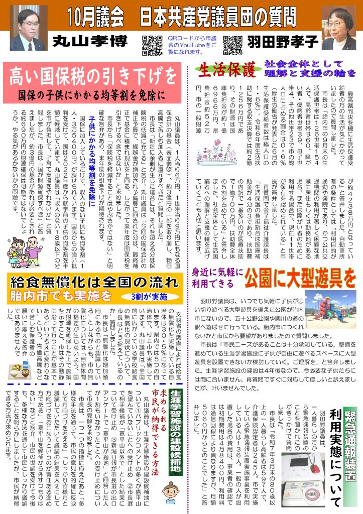 日本共産党胎内市議団ニュース 2024年8月4日 2面