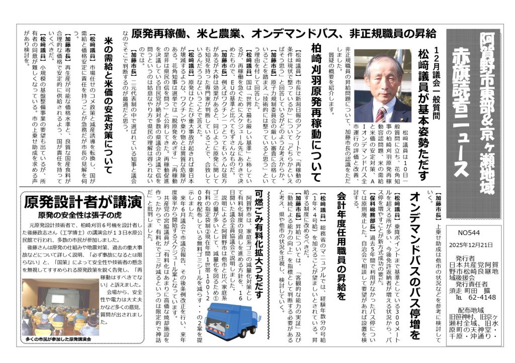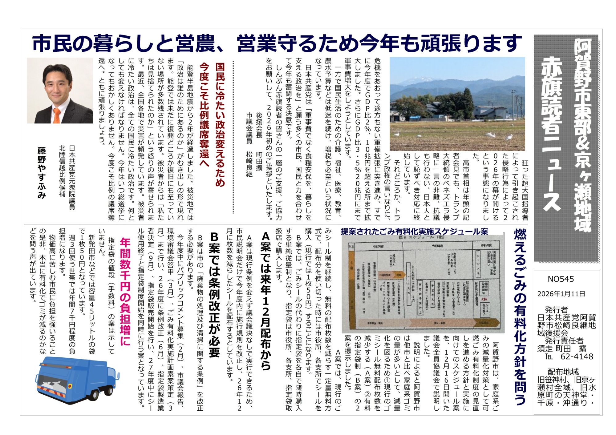 阿賀野市東部と旧京ヶ瀬村の地域の赤旗読者向けニュースです。松崎良継・阿賀野市議の活動地域です。