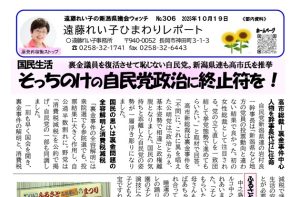 日本共産党の田村智子政策委員長・参院議員は8日、長岡市で開かれた党中越地区委員会の「地方選勝利に向けた集い」に駆け付け、来春の県議選(長岡市・三島郡区、定数6)での遠藤れい子氏(現)と長岡市議選(定数34)の勝利で、「自民党政治を終わらせる大きなたたかいをつくろう」と訴えました。