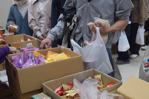新潟県の日本民主青年同盟(民青)新潟大学学生班と新日本婦人の会新潟支部は26日、新潟市西区の新潟大学近くの施設で学生向け食料支援を行い、62人の学生が利用しました。
