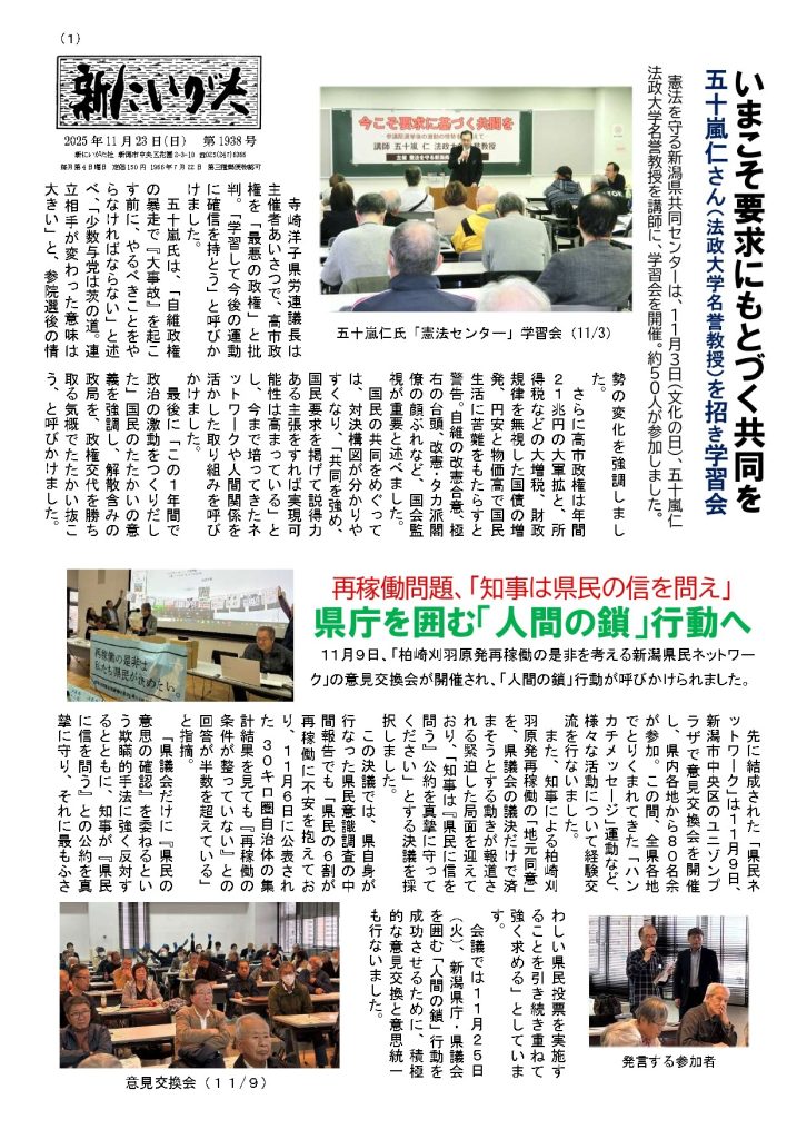 いまこそ要求にもとづく共同を 2025年11月22日 最終更新日時 : 2025年11月17日 JCP新潟 「新にいがた」2025年11月 第1938号 1面のみ掲載します。ご購読は日本共産党新潟県委員会(電話025-247-6366)まで。月1回発行、1部150円。 関連