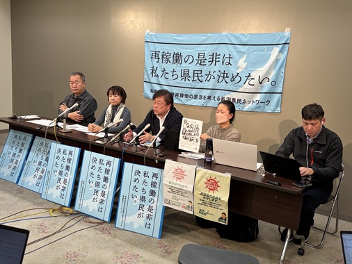 新潟県の花角英世知事は21日に東京電力柏崎刈羽原発の再稼働を容認したことに対して、同日に抗議声明を出した「柏崎刈羽原発再稼働の是非を考える新潟県民ネットワーク」は同日、県庁で会見しました。