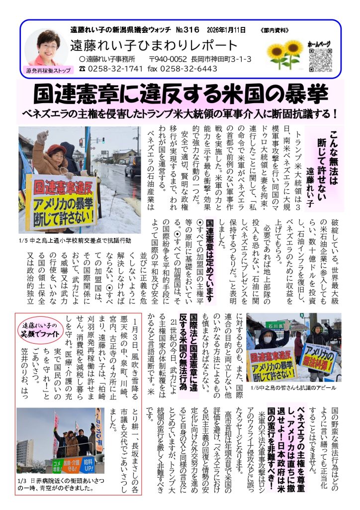 遠藤れい子ひまわりレポート №316 2026年1月11日