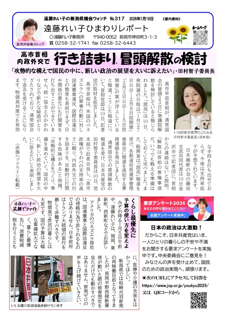 遠藤れい子ひまわりレポート №317 2026年1月18日