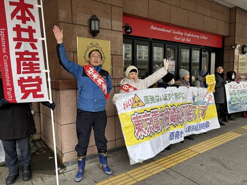 新潟県の東京電力柏崎刈羽原発6号機の再稼働に抗議するいっせい宣伝が20日、新潟県内各地で行われました。参加者は「住民の命を軽視する再稼働はやめろ」などと訴えました。